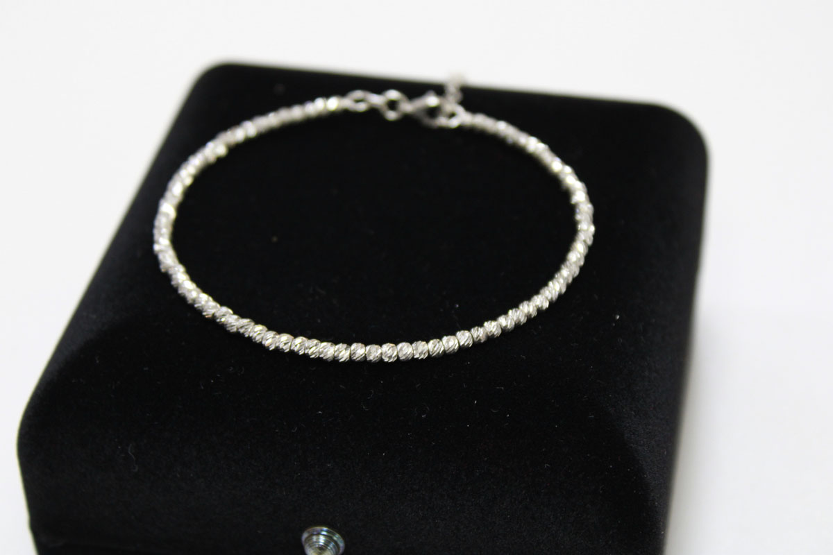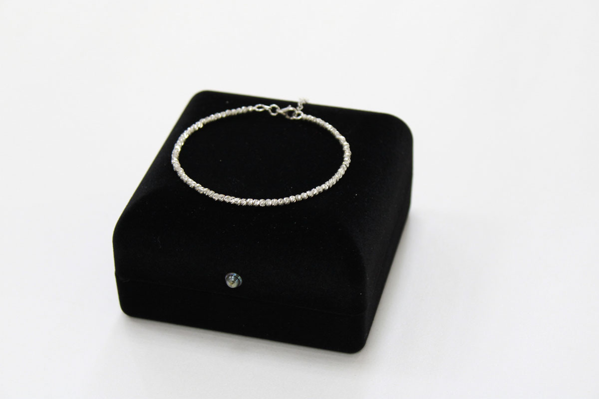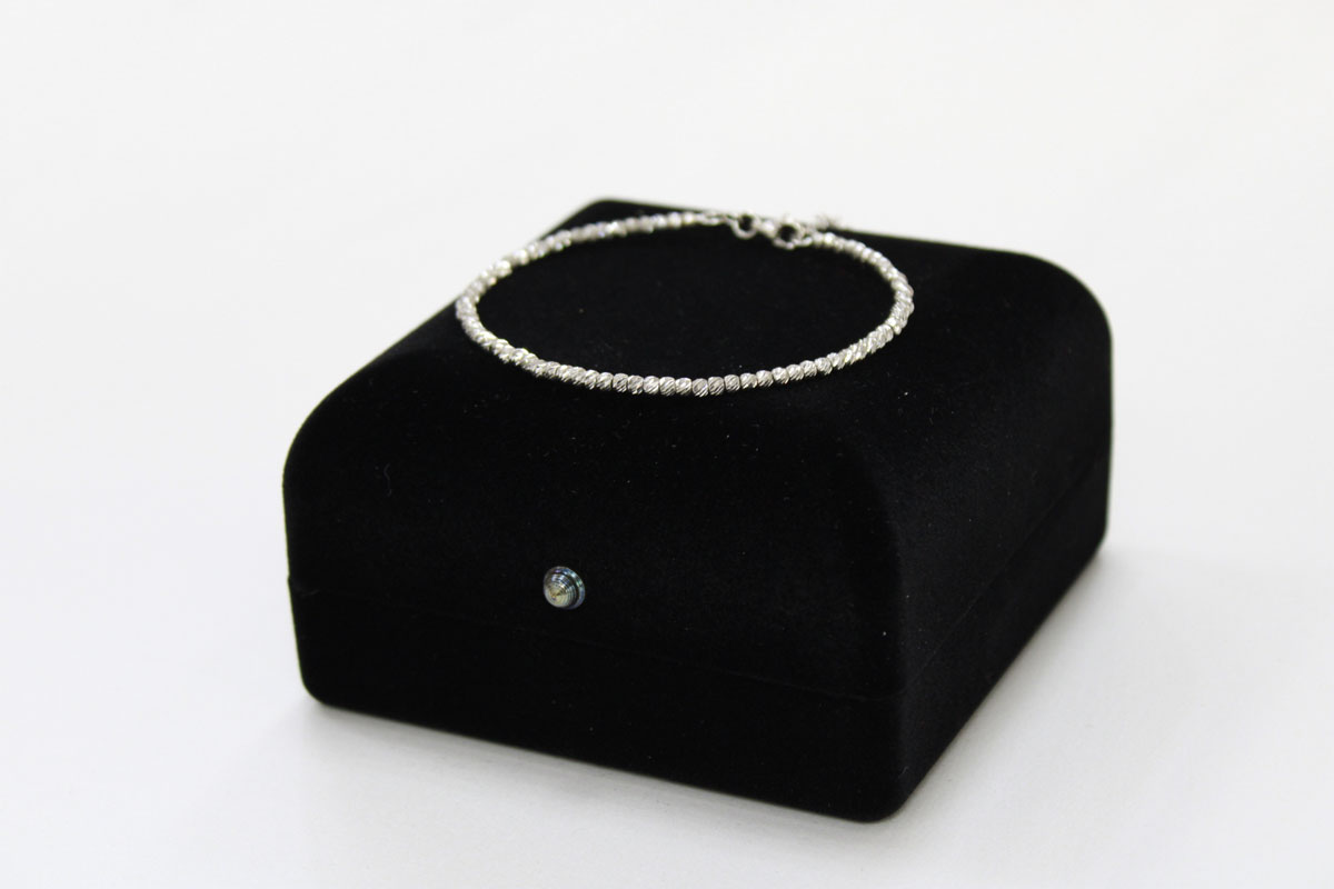 Дамска гривна „Italian Shine“ – 14K злато Лукс и изящество в едно – тази дамска гривна от 14 карата злато впечатлява с изтънчен италиански дизайн и прецизна ръчна изработка. Изработена от бяло злато, украсено с гравирани топчета от бяло злато, гривната излъчва изискан блясък и неподвластен на времето стил.