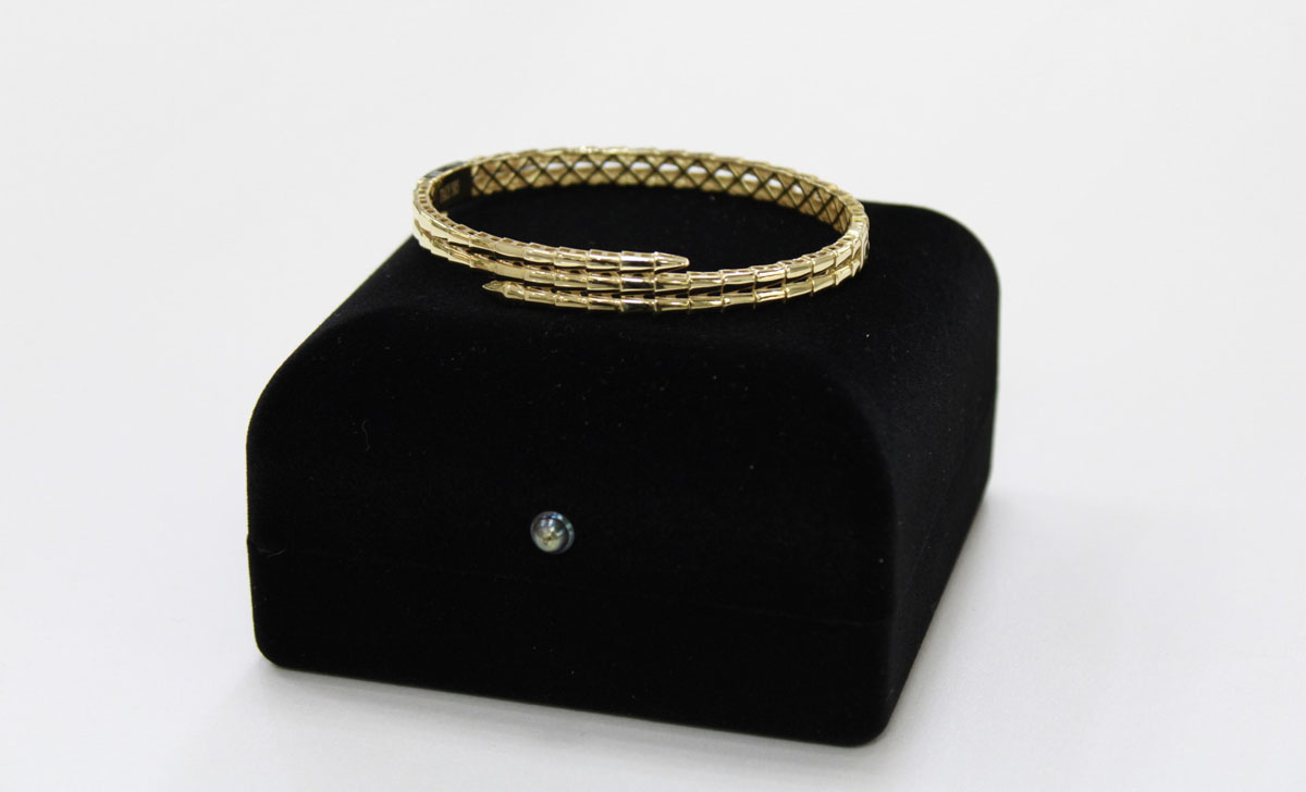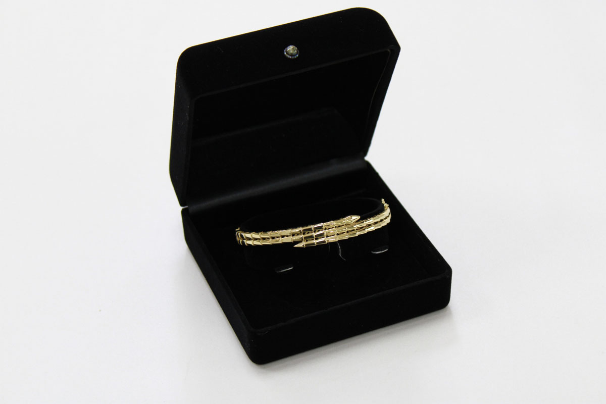 Дамска гривна ,,Змия“14К Вдъхновена от символиката на силата и изяществото, тази дамска гривна тип „Змия“ е изработена с изчистен и модерен дизайн. Формата ѝ се навива трикратно около китката, създавайки ефектен и стилен силует.